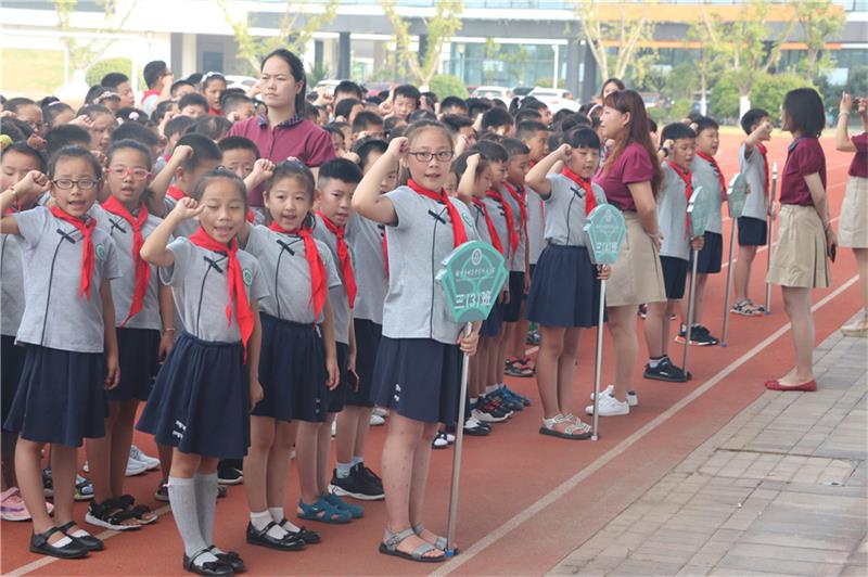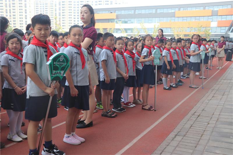 国歌奏响,队歌嘹亮。少先队员们队列标准,身姿规范。